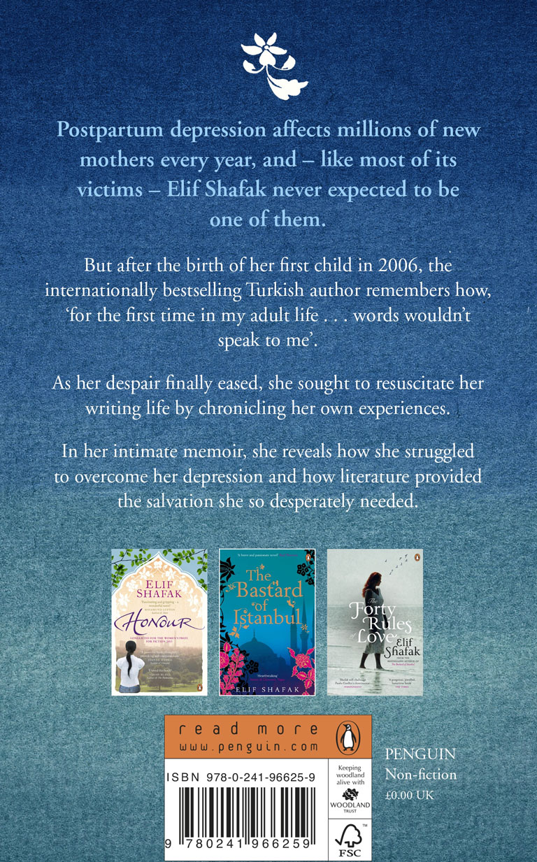 Ostpartum depression affects millions of new mothers every year, and -like most of its victims- Elif Shafak never expected to be one of them. But after the birth of her first child in 2006, the internationally bestselling Turkish author remembers how, "for the first time my adult life... words wouldn't speak to me" (p. 5).